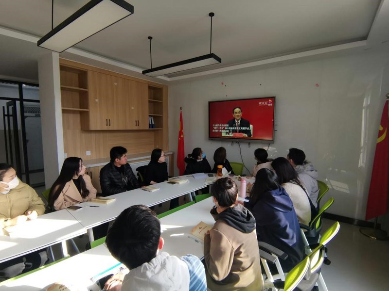 会议开始,霍蕾同志讲到:“党的十九届六中全会审议通过的《中共中央关于党的百年奋斗重大成就和历史经验的决议》承前启后、继往开来,深刻总结了党的百年奋斗历史和成功经验。我们要切实把思想和行动统一起来,汲取精神伟力,弘扬伟大建党精神。”随后第三党支部全体党员集中观看了“中共中央就党的十九届六中全会精神举行新闻发布会”的实况录像,学生党员张子仪表示:“我们要认真学习领悟十九届六中全会精神,在党的百年奋斗重大成就和历史经验中汲取力量,作为青年应该坚定理想信念,感党恩,跟党走。”