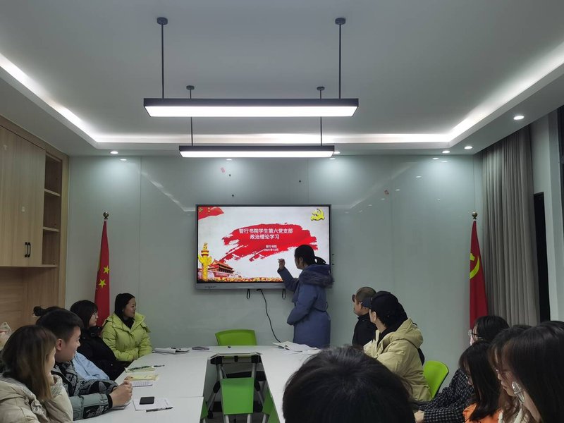 智行书院学生第六党支部12月14日晚在2#公寓三楼党员工作站开展了政治理论学习会议,活动由党支部书记苗琨同志主持,全体同志参加。
