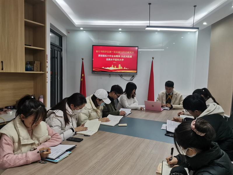 为深入学习宣传贯彻党的十九届六中全会精神,12月22日,智行书院学生第一党支部在书院3#公寓党支部工作站开展学习贯彻落实六中全会精神,决战决胜建设高水平医科大学主题党日活动。会议由党支部书记陈林主持,第一党支部全体党员参加。