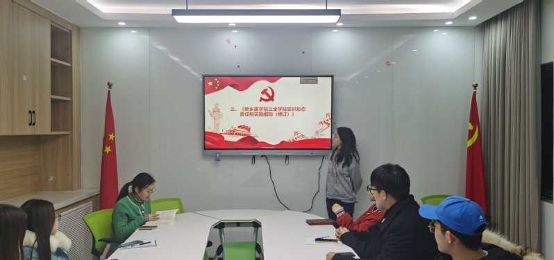12月16日晚,智行书院学生第八党支部在2#公寓党支部工作站开展政治理论学习,本次会议由党支部书记娄冰琼主持,学生第八党支部全体党员参加。