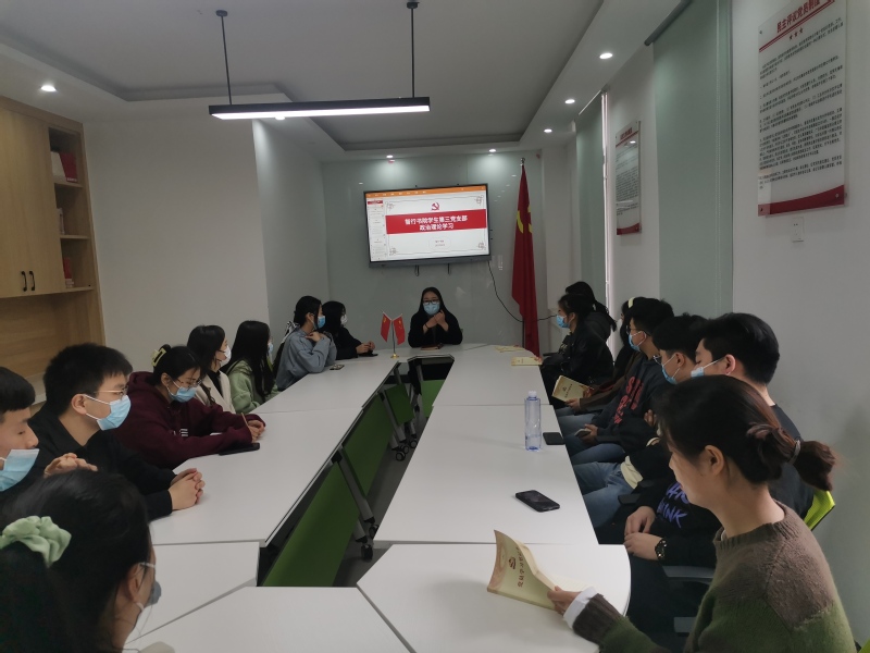 3月25日,智行书院学生第三党支部在1号公寓党员工作站开展三月份政治理论学习,会议由党支部书记霍蕾主持,学生第三党支部全体党员参加。