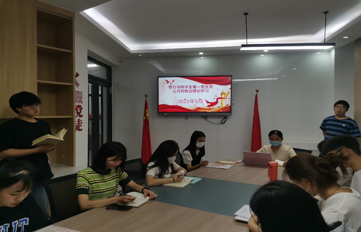 5月17日下午,智行书院学生第一党支部在智行书院3#公寓党支部工作站开展五月份政治理论学习,会议由党支部书记李莹莹主持,第一党支部全体党员参加。