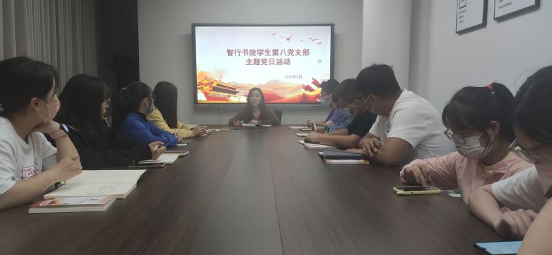 9月8日,智行书院学生第八党支部在书院四号楼会议室开展“迎接党的二十大 培根铸魂育新人”主题党日活动,会议由党支部书记娄冰琼主持,支部全体党员参加。
