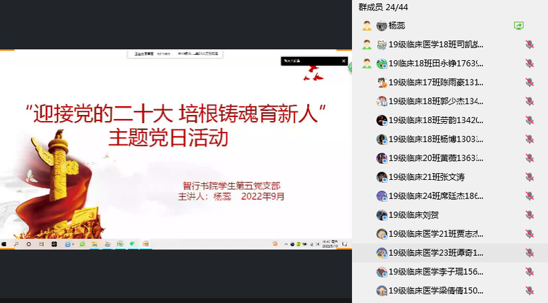9月11日,智行书院学生第五党支部通过QQ群课堂线上开展“迎接党的二十大,培根铸魂育新人”主题党日活动。本次主题党日活动由党支部书记杨蕊主持,支部全体党员参加。