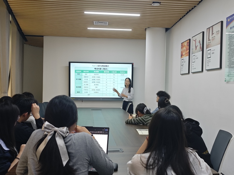9月18日中午,外国语学院成长导师王卫华于书院会议室开展了以“四级考试”为主题的指导活动,英语兴趣小组全体同学参加。