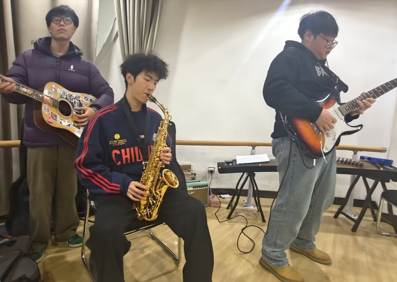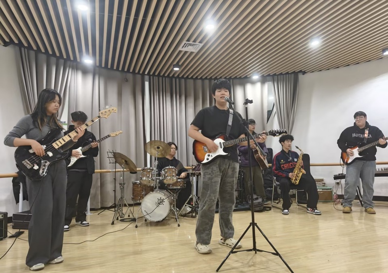 活动伊始,艺术活动中心内,演出在期待中拉开序幕。随着书院乐队以一首摇滚金曲《光辉岁月》强势开唱,强劲的鼓点、激昂的吉他独奏与极具感染力的唱腔瞬间点燃现场,音乐氛围热烈。