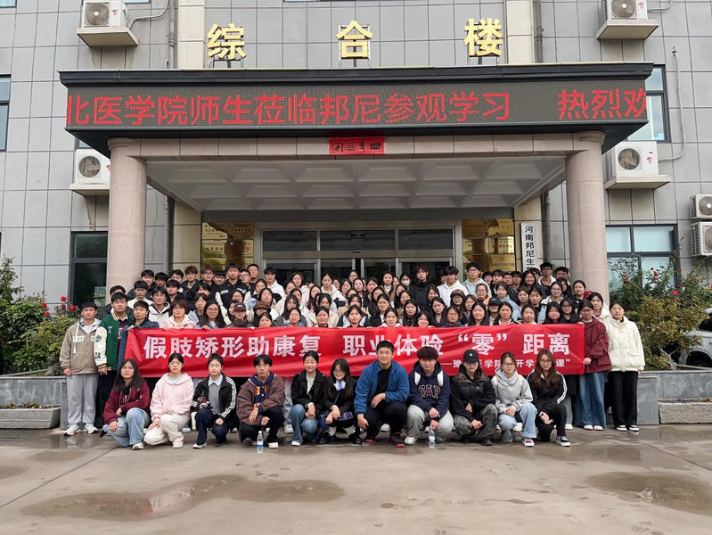为深化学生对所学专业的职业理解,将职业生涯启蒙教育从学校延伸至社会,帮助学生在价值观形成关键期建立对职业世界的直观认知,明晰个人发展方向,智行书院联合康复医学院于10月27日,组织2025级假肢矫形工程专业122名新生赴河南邦尼生物工程有限公司开展新生“职业生涯发展第一课”职业体验实践活动。