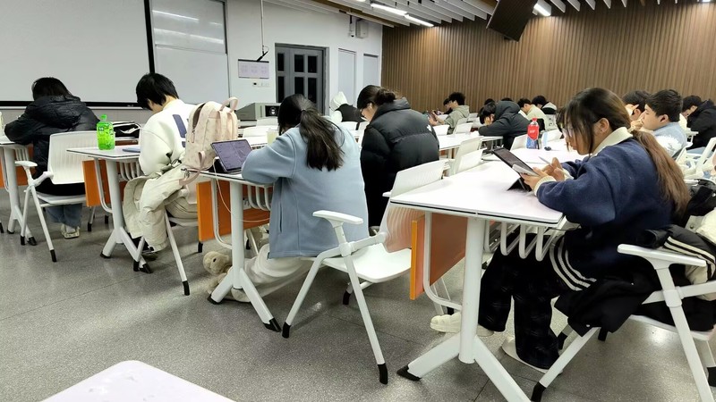 临近英语四六级考试,学习先锋队在书院功能区组织同学们开展四六级全真模拟,帮助同学们熟悉考试流程、检验复习成效,在互助与陪伴中,冲刺阶段的学习变得更有方向、也更有温度。“听力技巧如何提升?”“阅读速度怎么加快?”——通过经验共享与交流,使英语学习走出书本、融入对话,让备考之路有人同行、有法可循。大三的韩亦菲同学分享道,自己平时做题容易分心,但在这里有严格的考试氛围,还能和同学一起讨论错题,效果完全不一样。