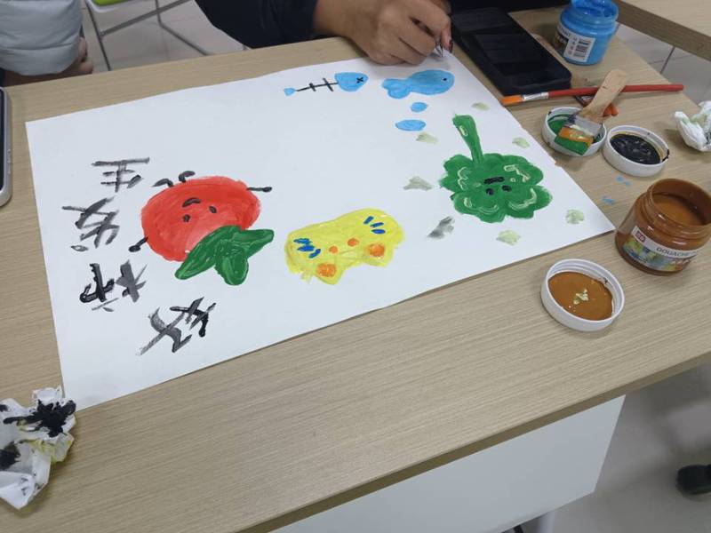 一支画笔,零门槛“情绪翻译器”。同学们在张老师指导下制作“情绪色卡”:先为抽到的关键词命名一种颜色,再反向追问“这种颜色此刻对我意味着什么”。无需绘画基础,只需把颜料自由涂抹、拼贴、刮擦,甚至直接用手指按压。药学专业刘同学把“断电”涂成夸张的荧光绿,“那一刻宿舍突然变黑,我却听见全楼的尖叫变成笑声,像绿光一样出其不意。”她说,当颜色落在卡纸上的瞬间,自己第一次感到“焦虑被承认,而不是被否定”。