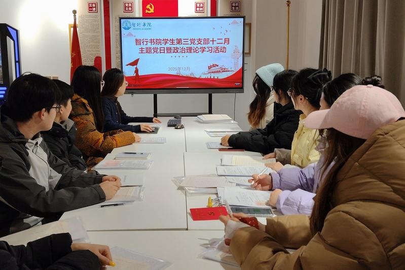 为锚定年度工作收尾目标、凝聚“十五五”发展共识,智行书院学生第三党支部于12月24日晚在书院新时代党员活动室开展“打好收官战 谋划十五五”主题党日活动暨政治理论学习。活动由学生第三党支部书记霍蕾主持,党支部全体成员参加。