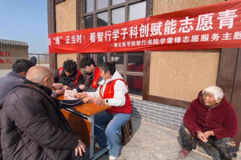 春和景明,草木蔓发,在3月12日植树节这个特殊的日子里,智行书院联合新乡市原阳县师寨镇香史庄村委会开展以“植绿健康服务双向奔赴”为主题的雷锋月首站志愿服务活动。书院学子化身志愿先锋,将植树护绿的生态实践与便民义诊的医者担当相结合,以青春之力播撒绿色希望,用专业之举守护群众安康,让志愿精神在春日里绽放别样光彩。